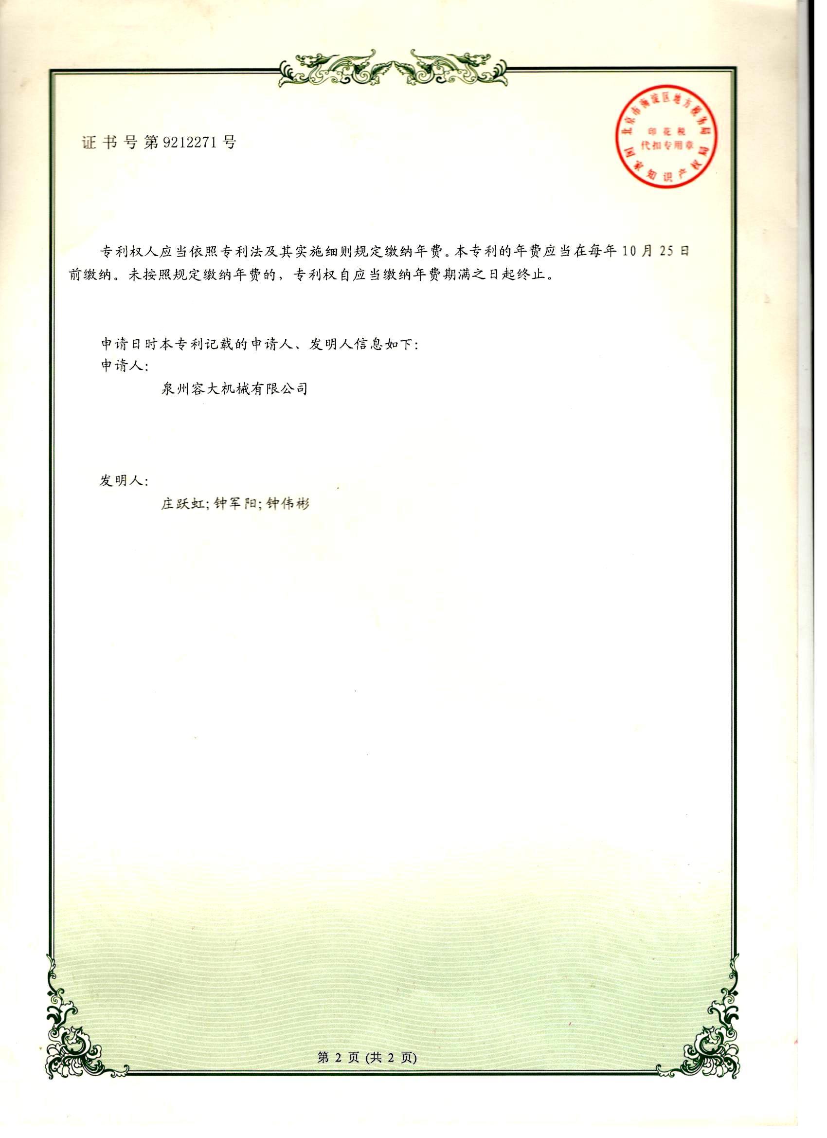 您的位置: 泉州容大機(jī)械有限公司 > 專利證書 > 多功能輸送機(jī)